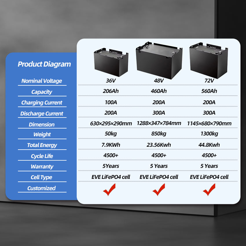 OEM ODM LiFePO4 24v 36v 48v 72v 280Ah Lithium Ion Lifepo4 Battery Lithium Battery Recharge Golf Cart Battery